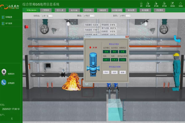 山東盛和電子有限公司城鎮(zhèn)綜合管廊地理信息管理平臺(tái)的基礎(chǔ)數(shù)據(jù)庫(kù)和服務(wù)器集成在監(jiān)控與報(bào)警統(tǒng)一管理信息平臺(tái)內(nèi),并在平臺(tái)上提供人機(jī)交互界面。系統(tǒng)預(yù)留與市政基礎(chǔ)設(shè)施地理信息系統(tǒng)聯(lián)通的通信接口。